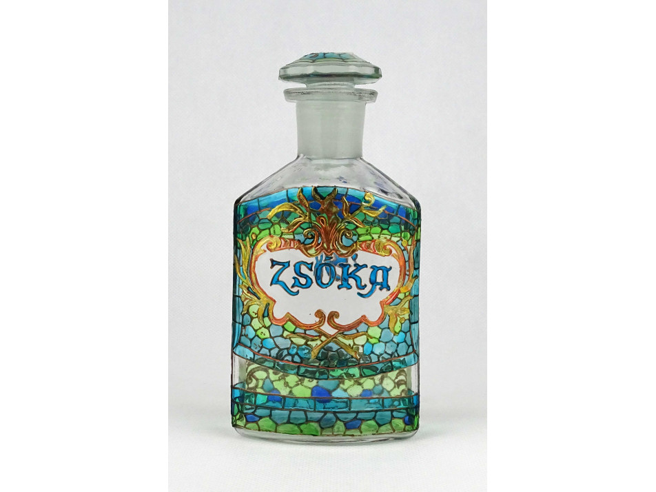 Látványos kék - türkiz - arany színű ZSÓKA feliratú patika gyógyszertári üveg 16.5 cm