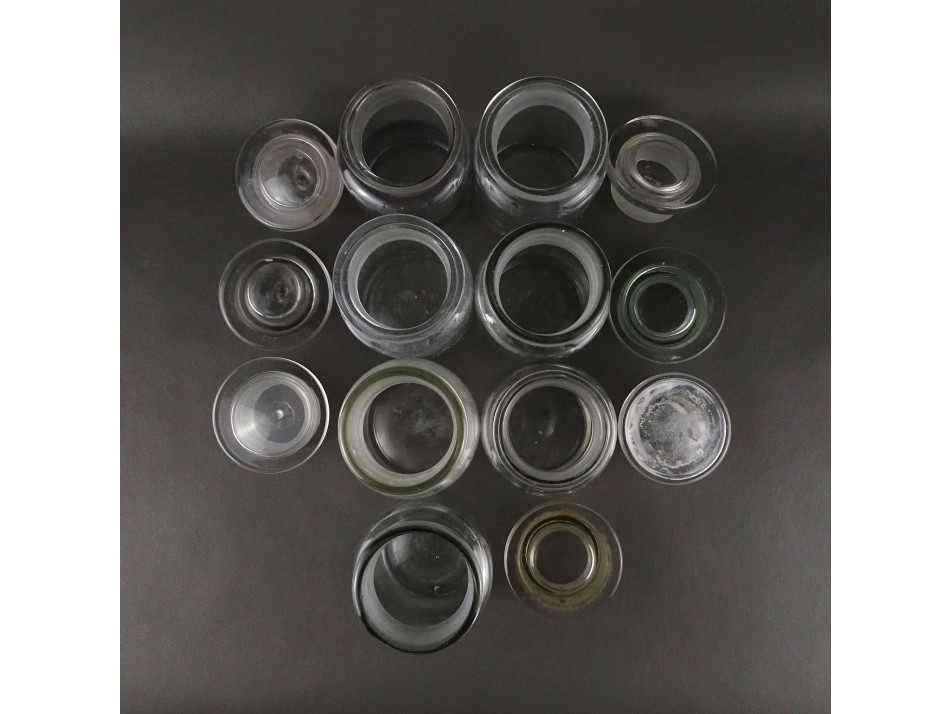 Régi nagyméretű gyógyszertári patika üveg tégely csomag 7 darab 16.5 cm