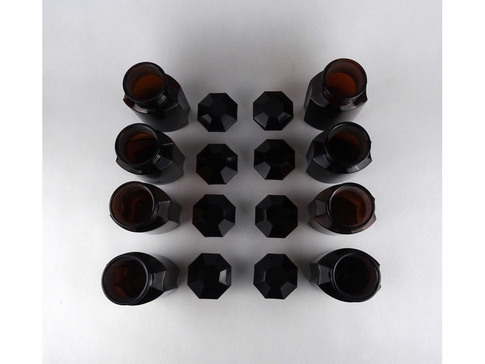 Régi nagyméretű barna színű gyógyszertári patika üveg tégely csomag 8 darab 15.5 cm
