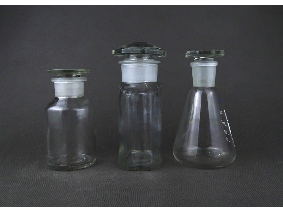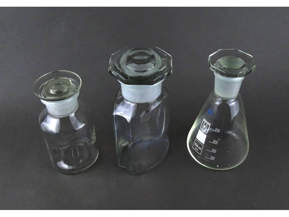 Régi csiszolt dugós laboratóriumi patika üveg csomag 3 darab