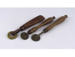 Régi, vastag falú, négy személyes, üveg süteményes készlet.