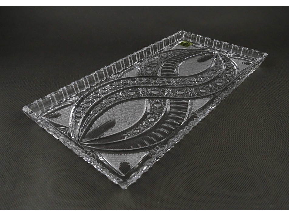 Vastagfalú, jelzett Ajkai kristály tálca kínáló tál 32 x 16.5 cm