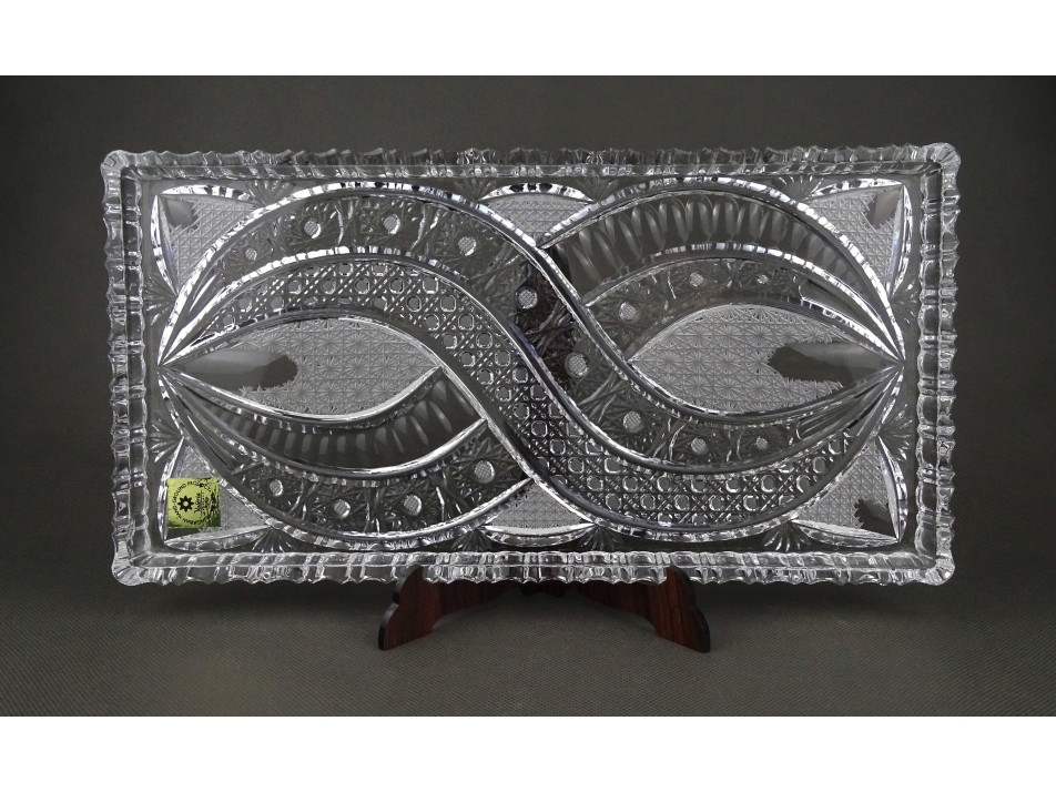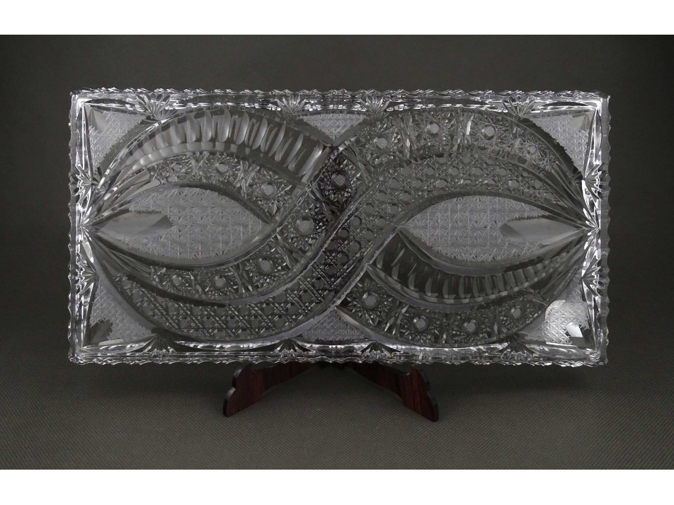 Hibátlan állapotú, nagy méretű, vastagfalú, gazdagon csiszolt Ajkai kristály kínáló tál, tálca.