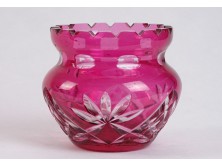 Szép állapotú, kisméretű, csiszolatokkal díszített üveg váza.