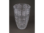Hibátlan állapotú, vastagfalú, csiszolatokkal díszített, különleges formájú, csiszolt üveg váza, díszváza, kaspó, asztalközép.