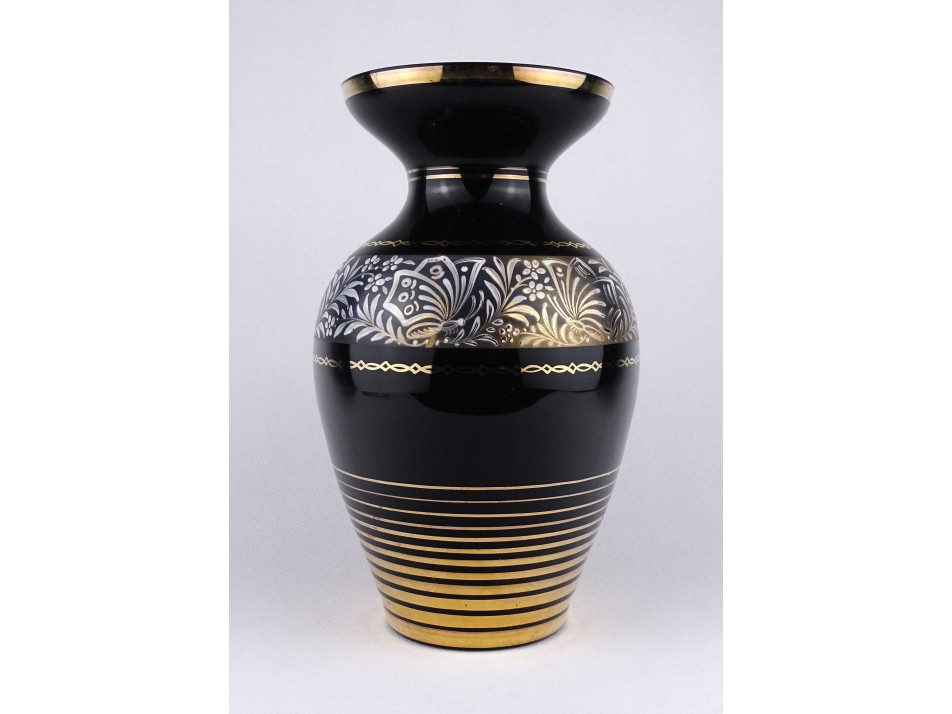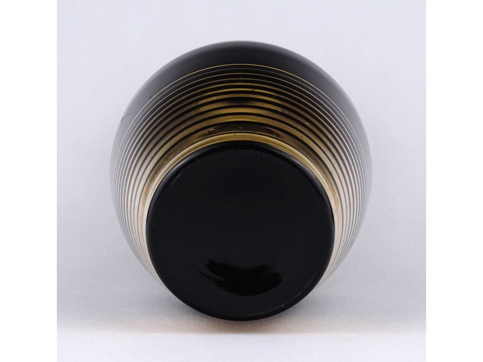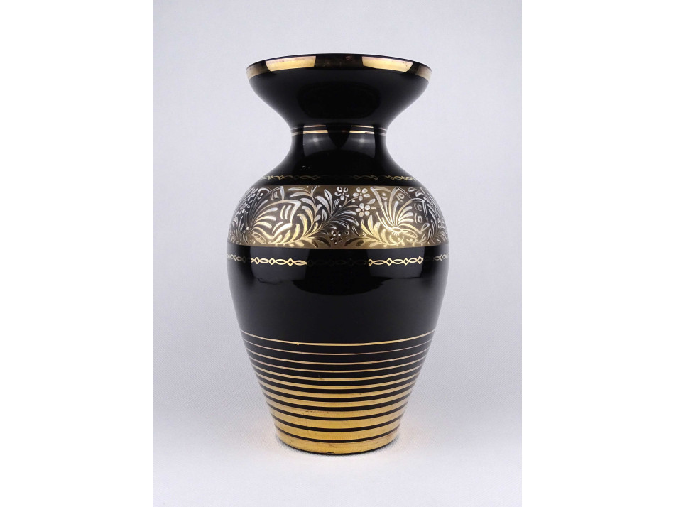 Nagyméretű, fekete, aranyozott üveg váza 26.4 cm