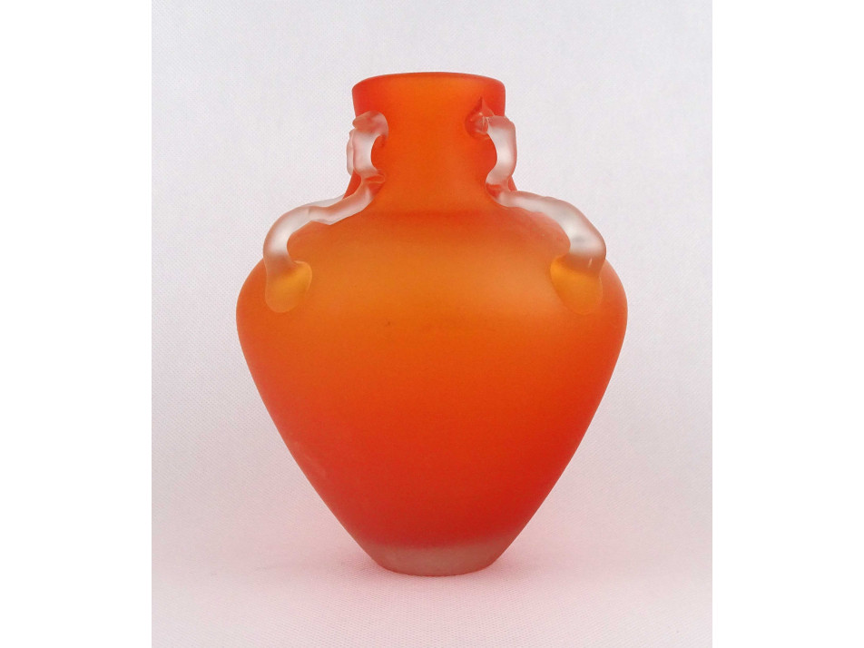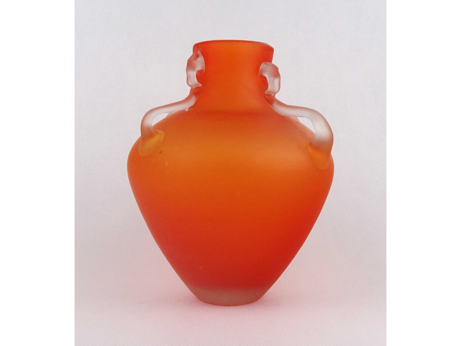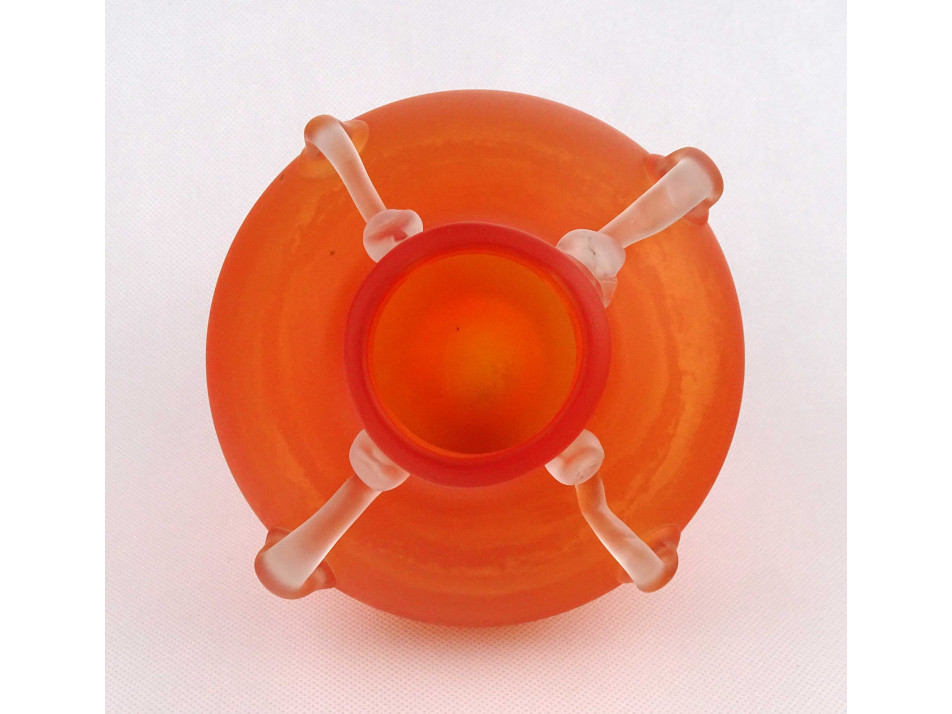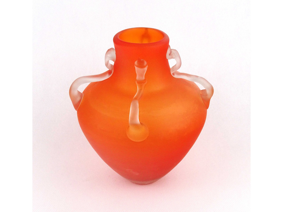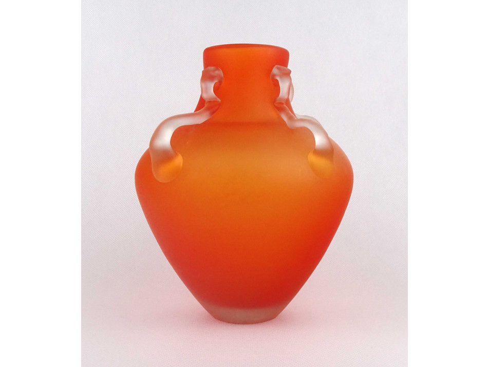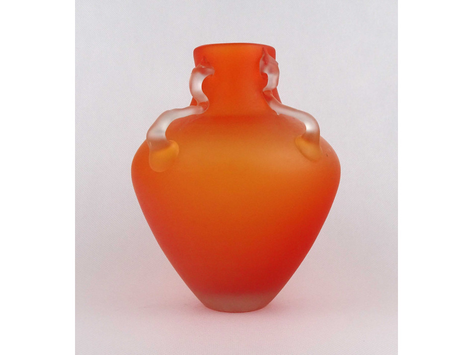 Hibátlan állapotú, narancssárga színű, művészi muránói fújt üveg díszváza.