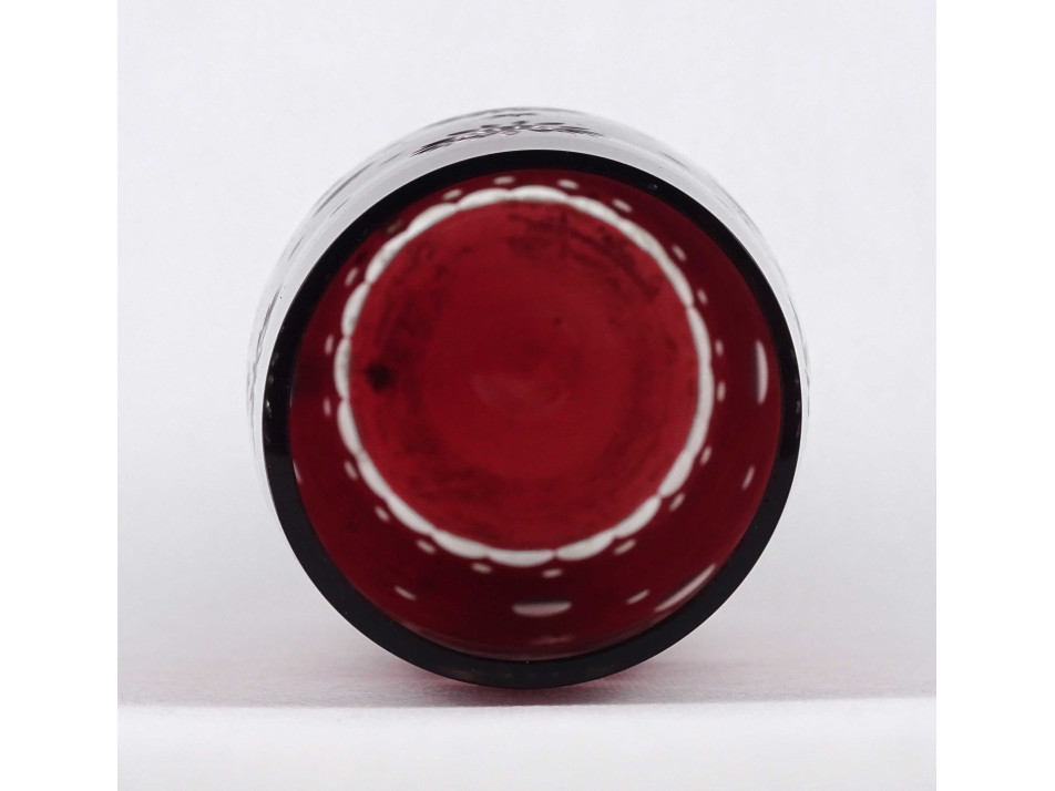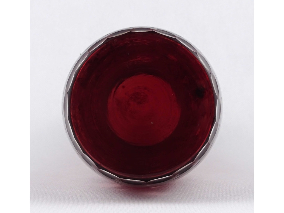 Régi bordó, csiszolt, fújt üveg váza 22 cm