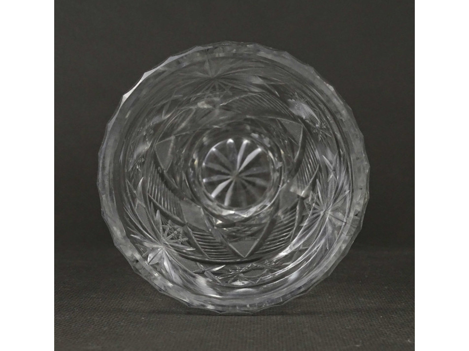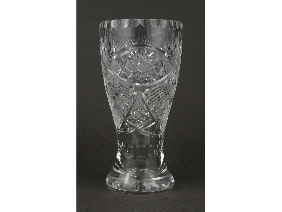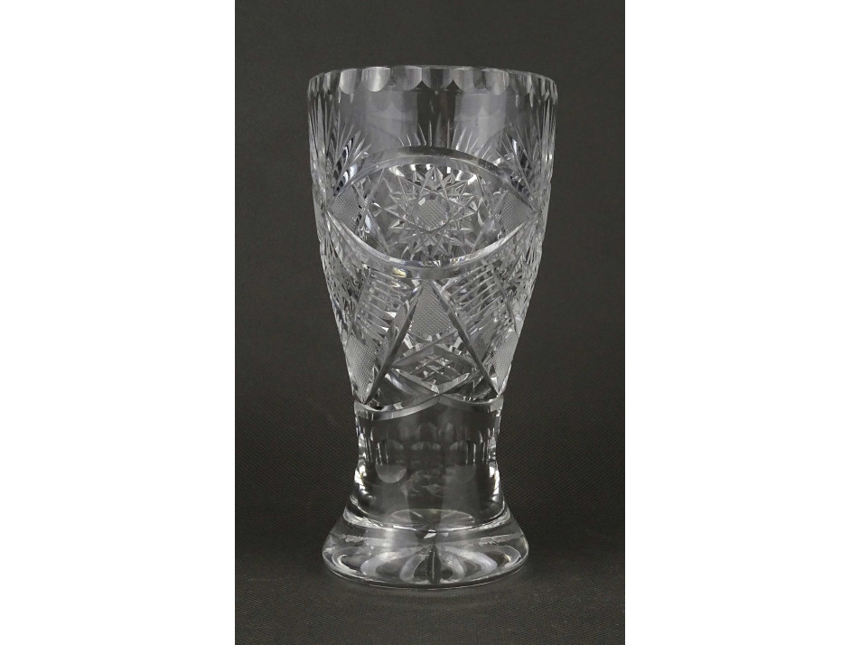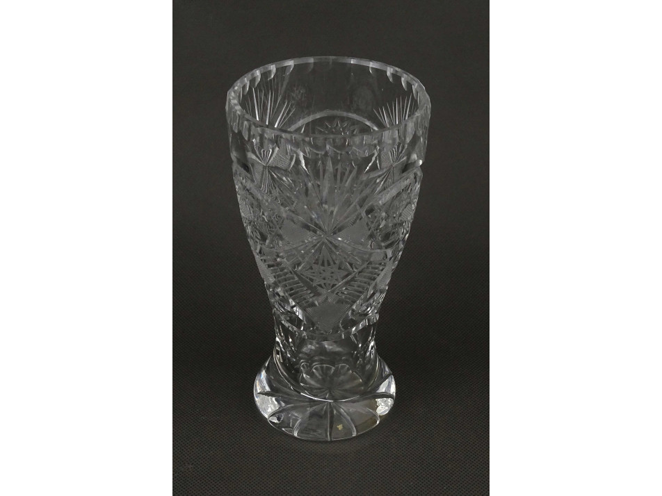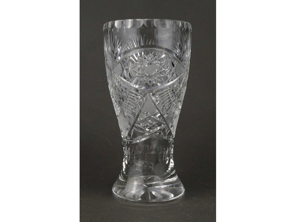 Hibátlan állapotú, csiszolatokkal gazdagon díszített, vastagfalú kristály váza, díszváza.