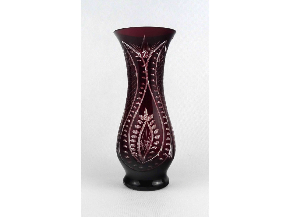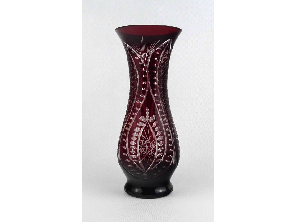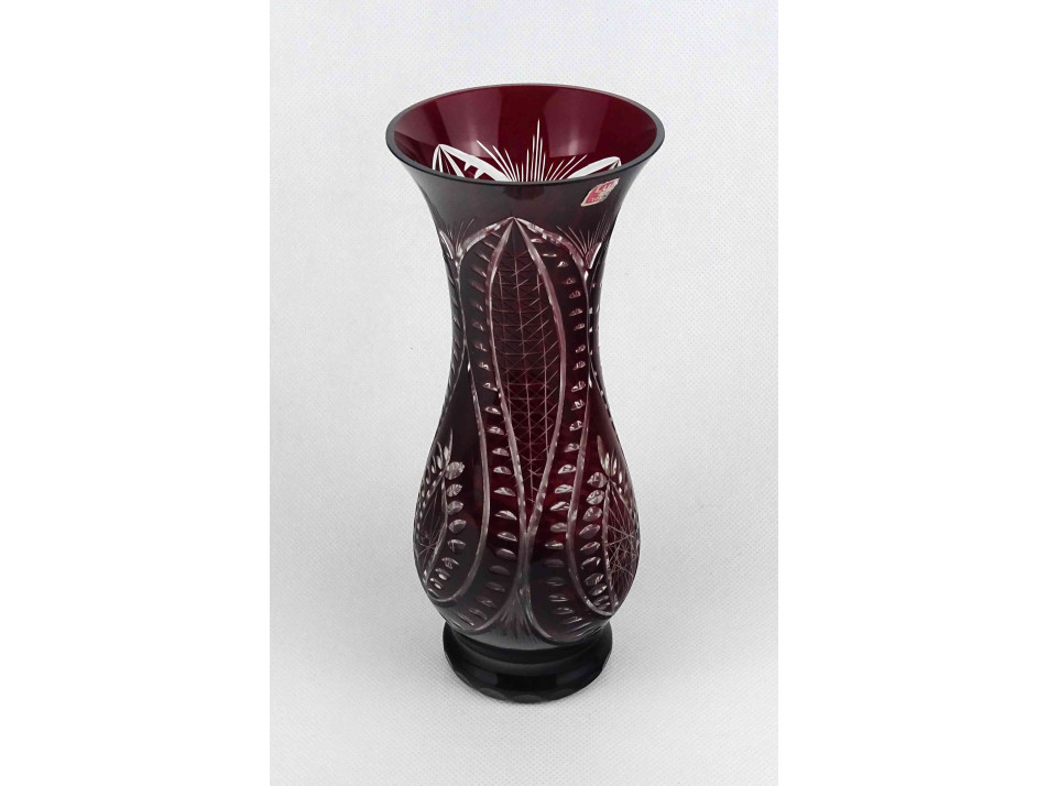 Bordó csiszolt kristály váza 22 cm
