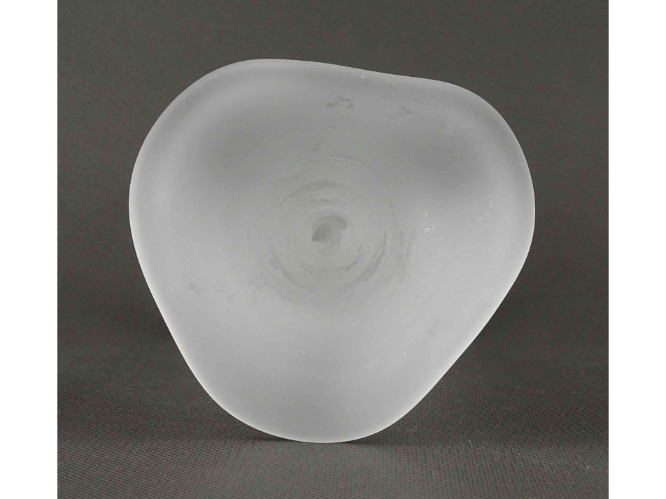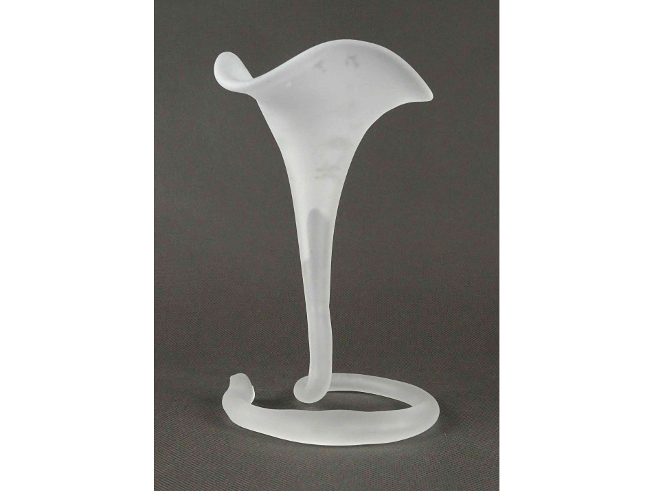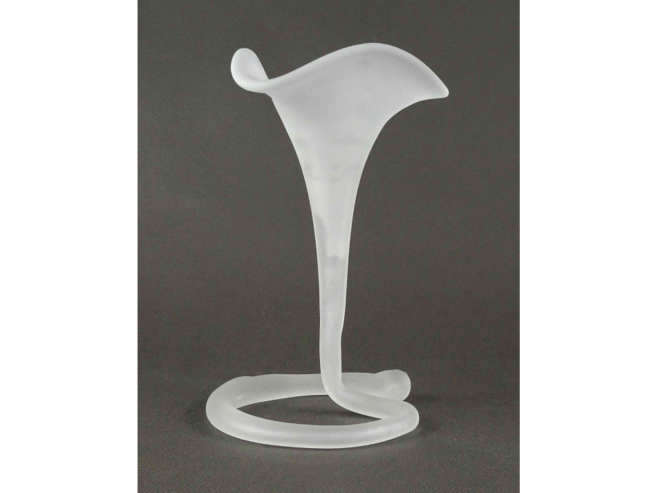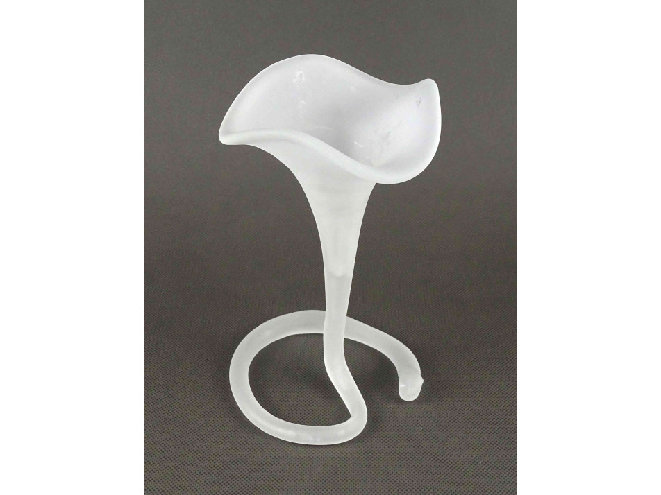 Hibátlan állapotú, karcsú, elegáns, spirális alakban tekeredő talpú, fújt opál üveg váza, szálváza, design váza egy szál virág számára. A talp végén a fújt üveg szakításának nyoma látható.