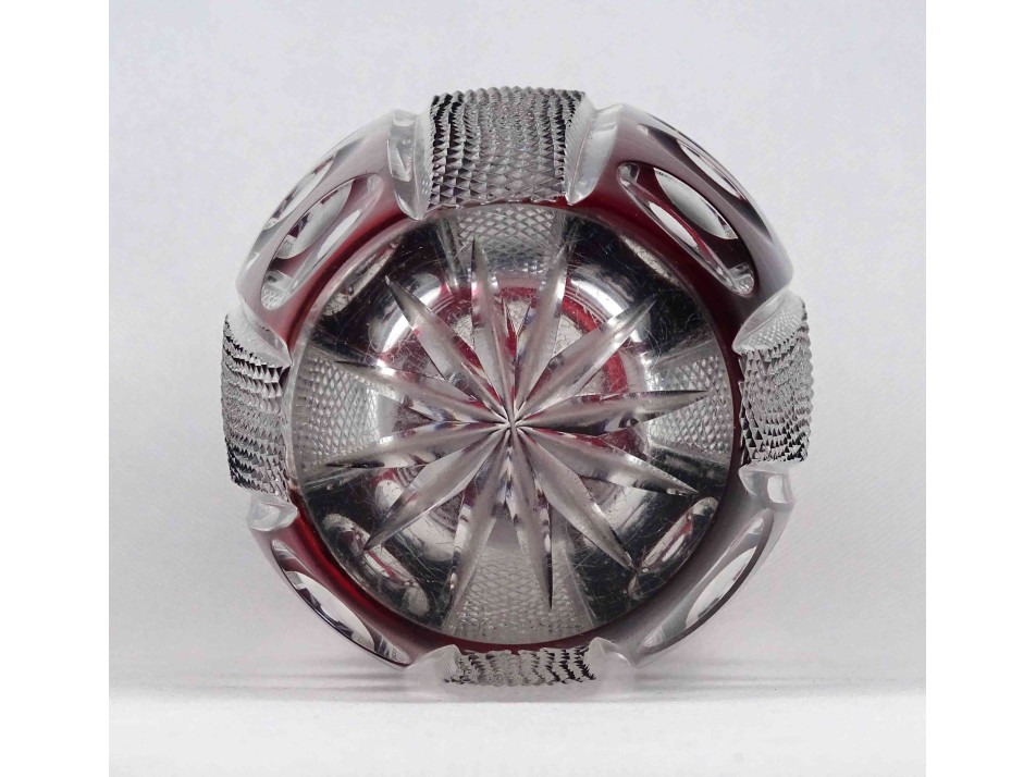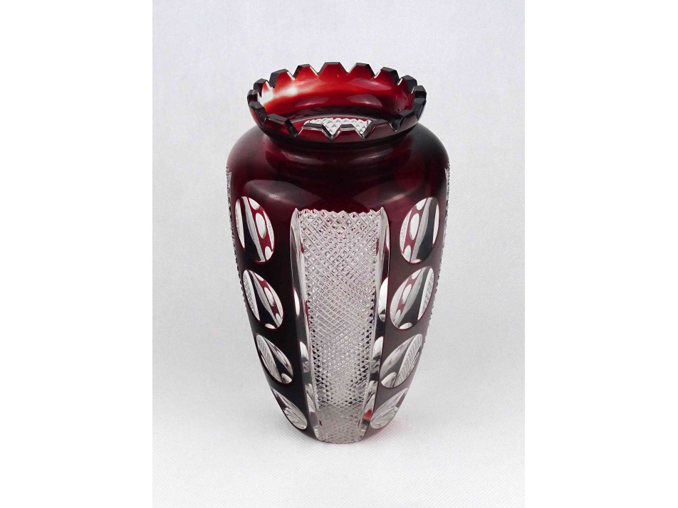 Régi nagyméretű bordó csiszolt kristály váza 21.5 cm