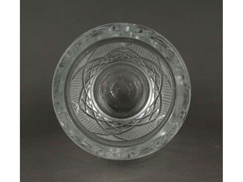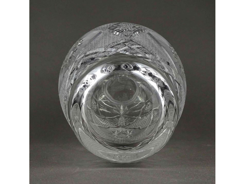 Gyönyörű, hibátlan állapotú, csiszolatokkal gazdagon díszített, vastagfalú kristály váza, díszváza.