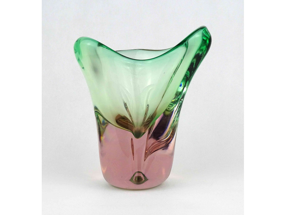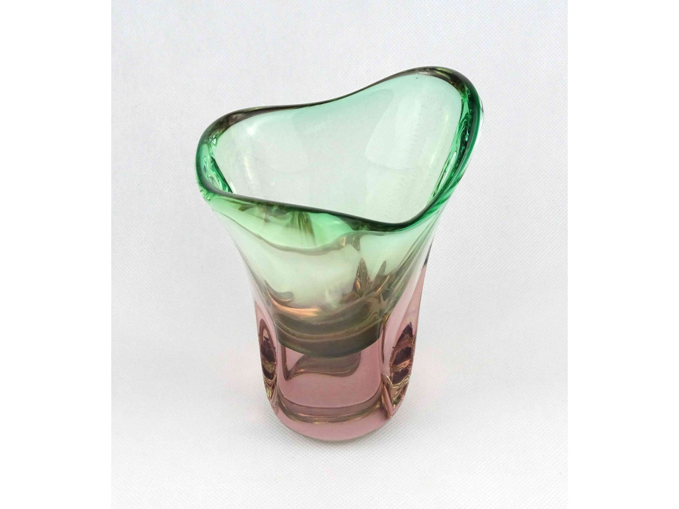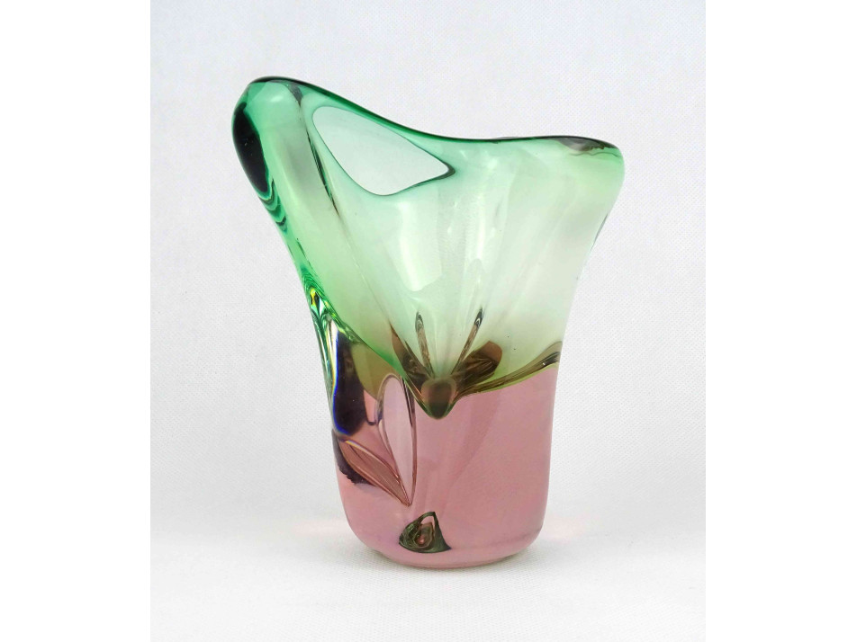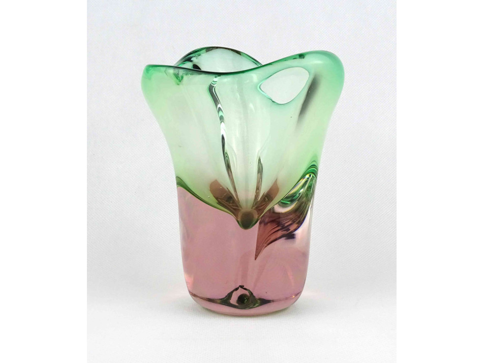 Fújt cseh sommerso üveg BOHEMIA művészi díszváza 17 cm