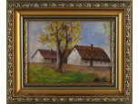 László jelzéssel : Tanya nyáron - olaj karton festmény 17.5 x 13.5 cm