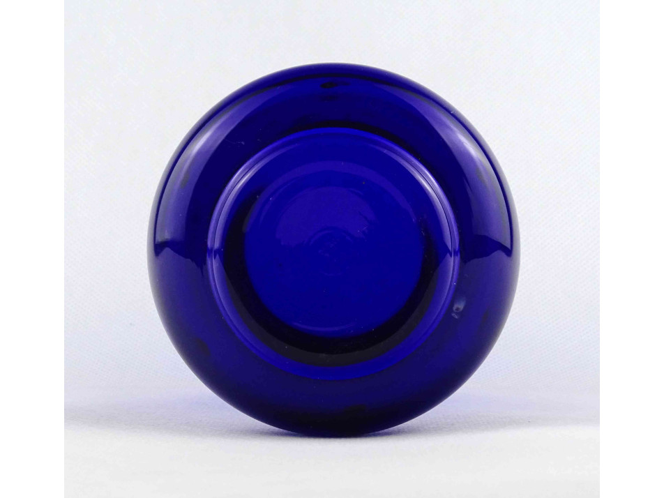 Régi kisméretű kamillavirág mintás kék színű parádi üveg váza 13 cm