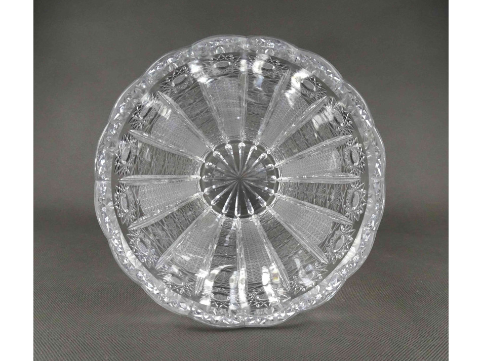 Hibátlan állapotú, csiszolatokkal gazdagon díszített, nagy méretű, vastag falú, széles szájú, öblös kristály virág váza, díszváza.