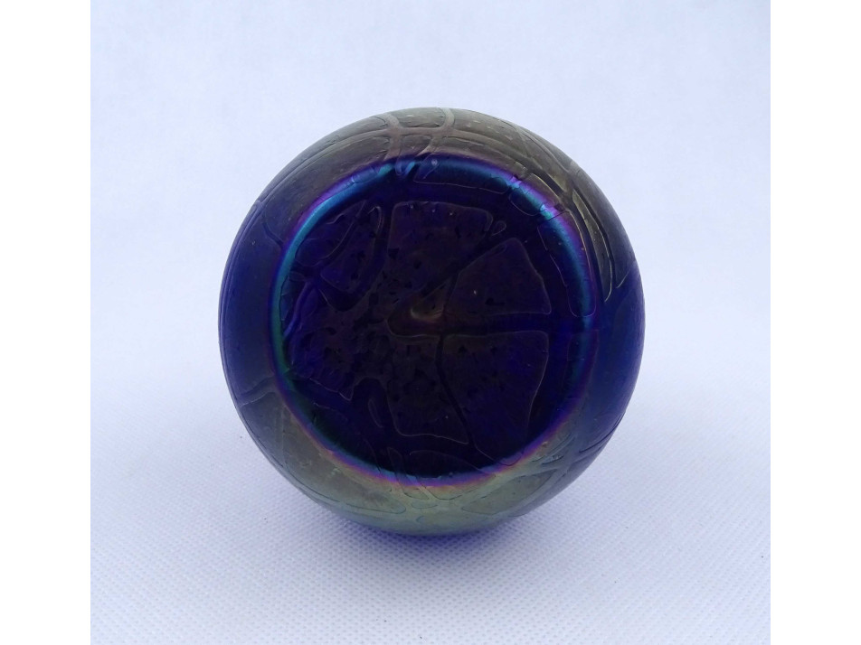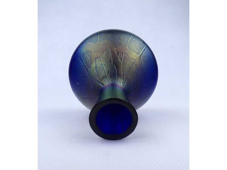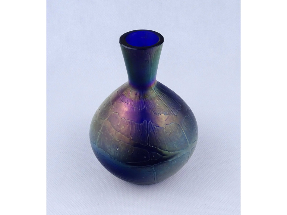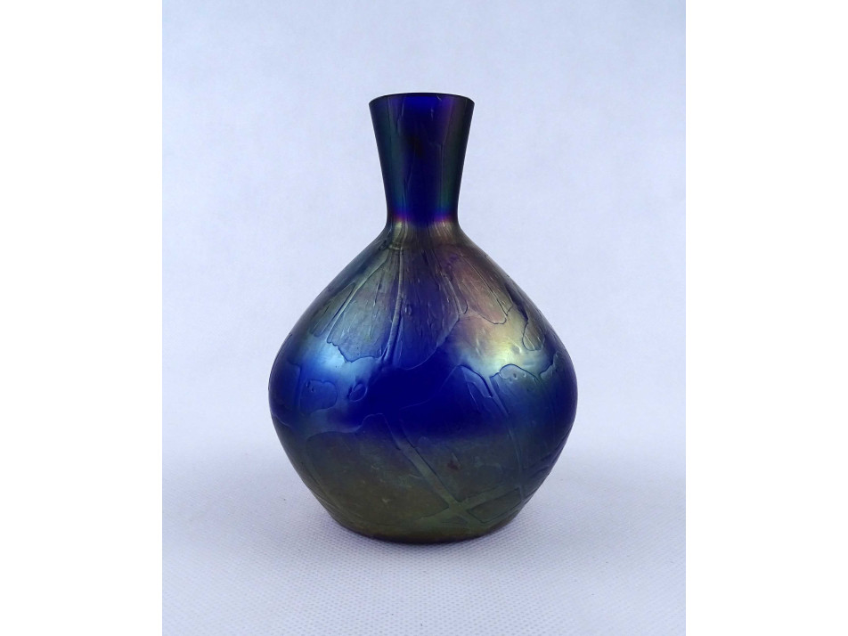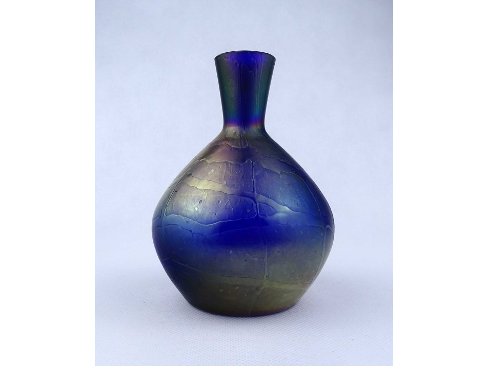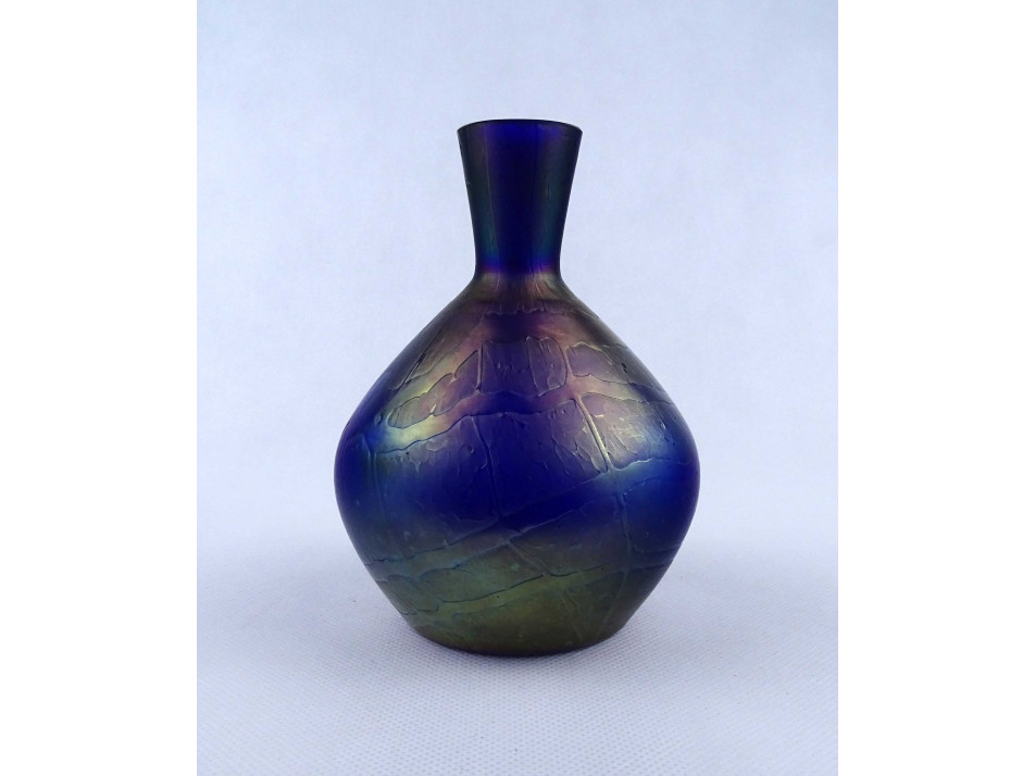 Antik irizáló Kralik művészi fújt üveg kis váza 14.3 cm