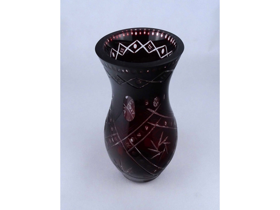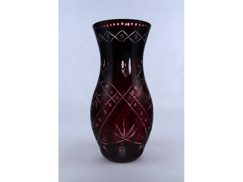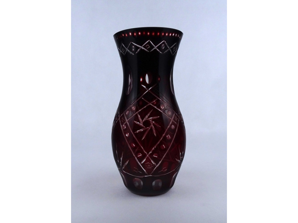 Bordóra színezett csiszolt kristály váza 26.7 cm