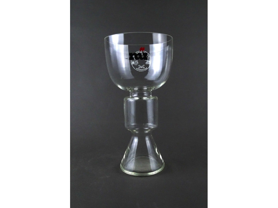 Régi, hibátlan állapotú, különleges alakú emlék váza, díszváza. Oldalán festett fehér embléma és emlékfelirat túloldalán márkajelzés látható.