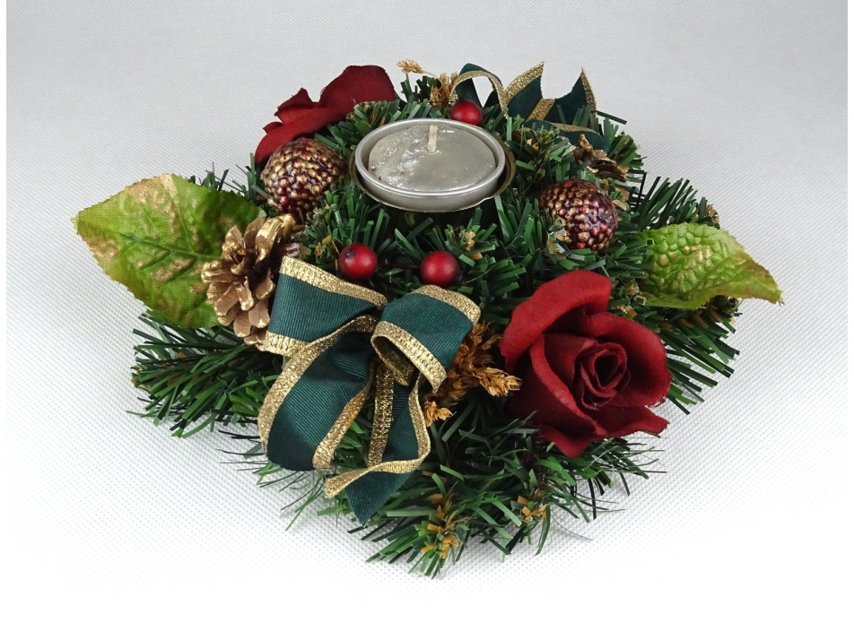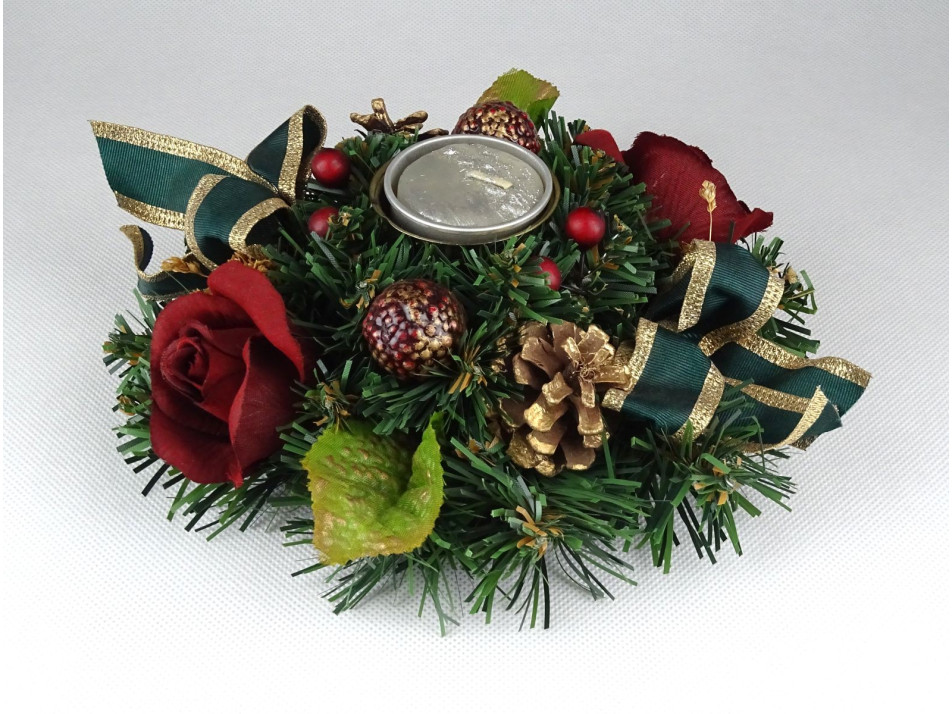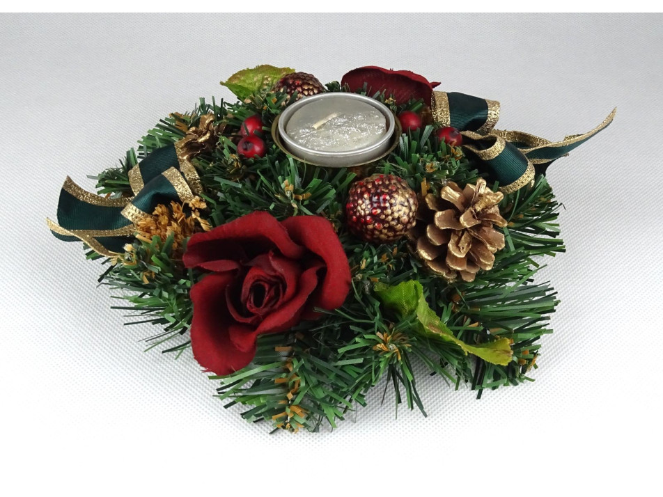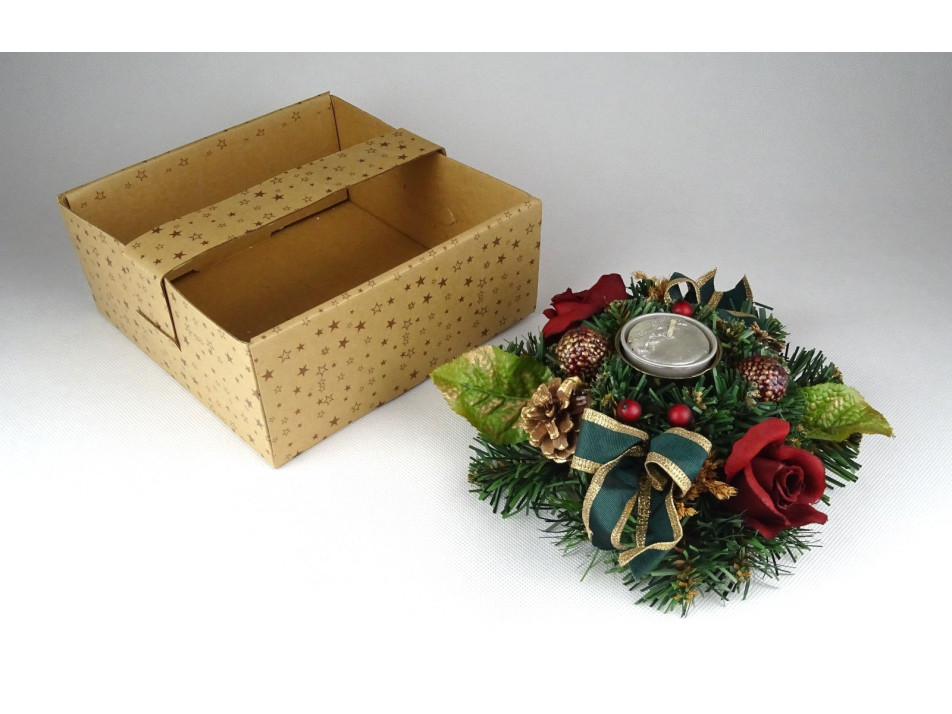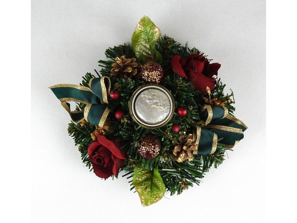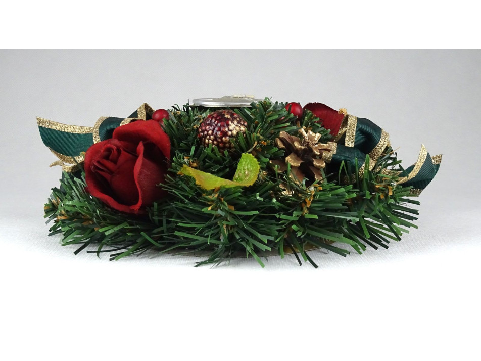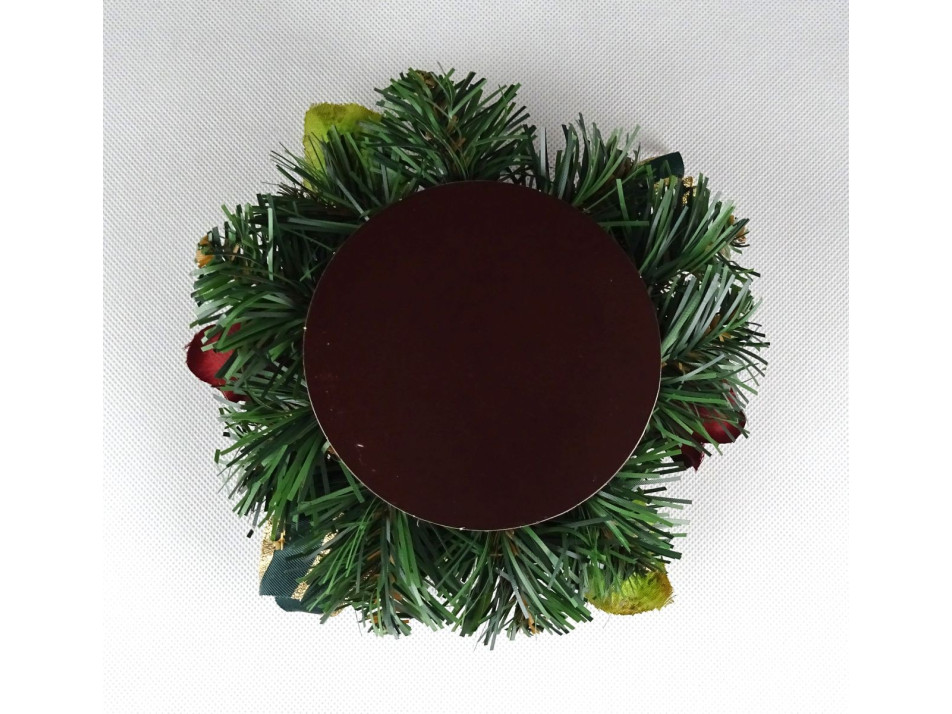 Eredeti dobozában található kis méretű karácsonyi koszorú, közepén mécsestartóval.