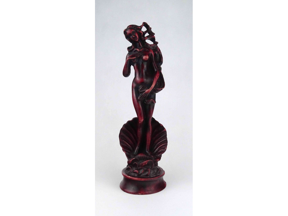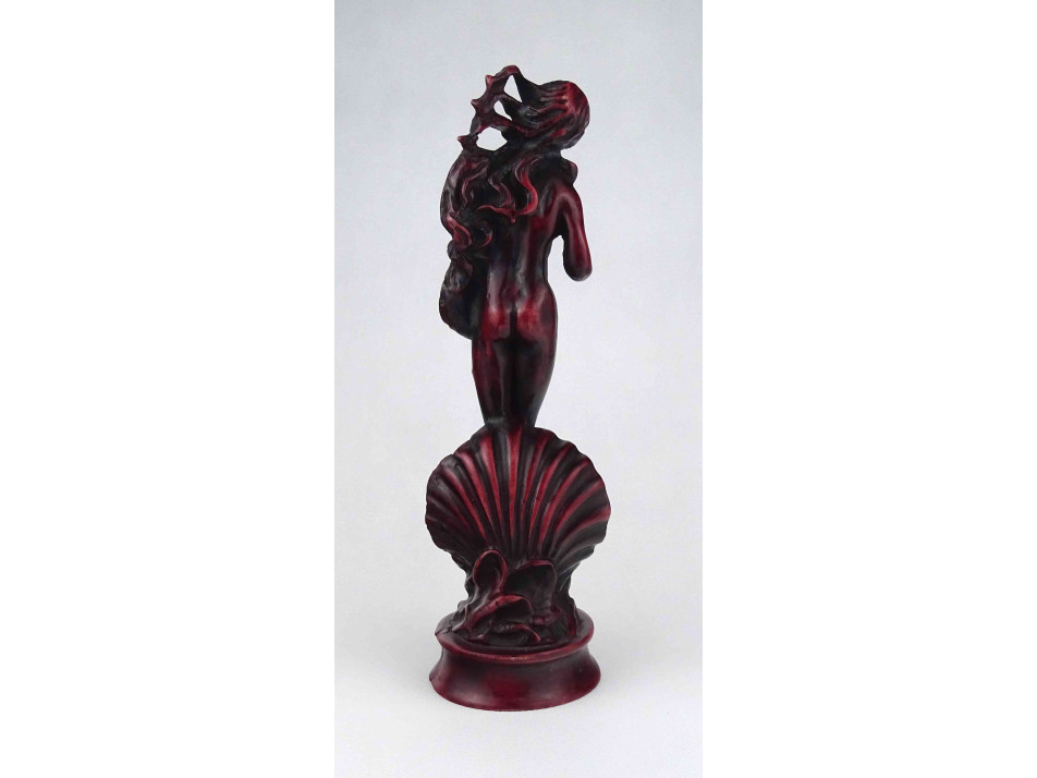 Hibátlan állapotú, talapzaton álló vörös színű műgyanta, Vénusz születése (S. Bottichelli) szobor. Kagylóban álló női akt.