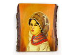Romániai deszkára festett női portré 26.5 x 23 cm
