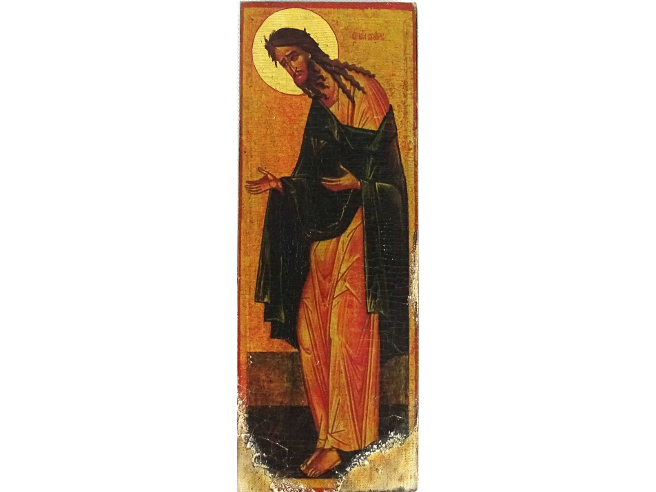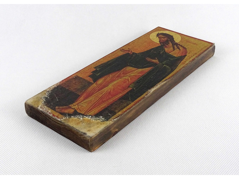 Keresztelő Szent János ikonmásolat fatáblán 27.5 x 10.5 cm