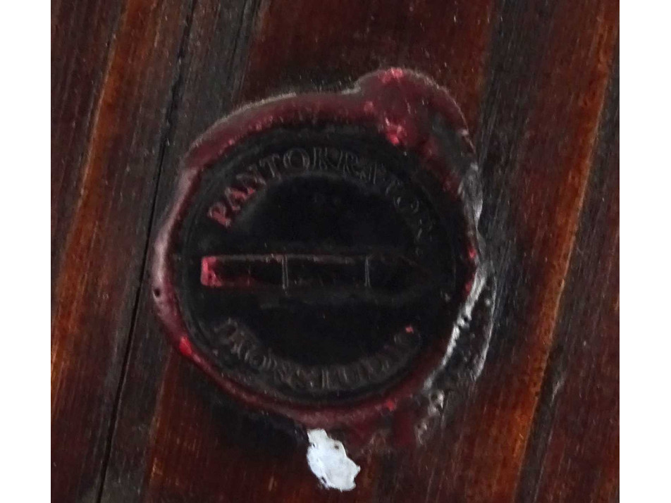 Hibátlan állapotú, antik ikon másolata fatáblán, falra akasztási lehetőséggel. Hátoldalán hitelesítő viaszpecsét és papírcímke látható.